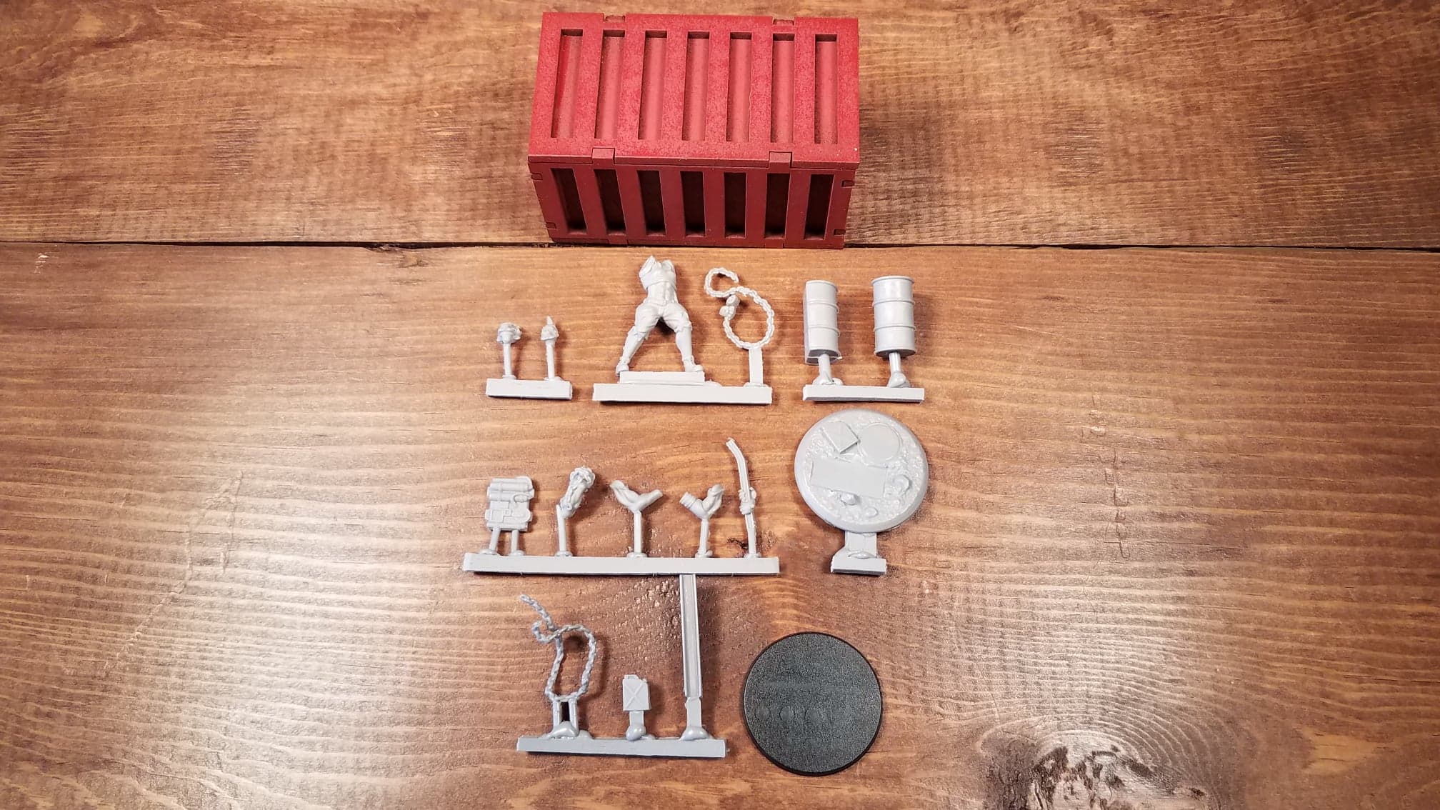 This model kit also comes packaged in a shipping container that you can use in your games of Broken Contract.
