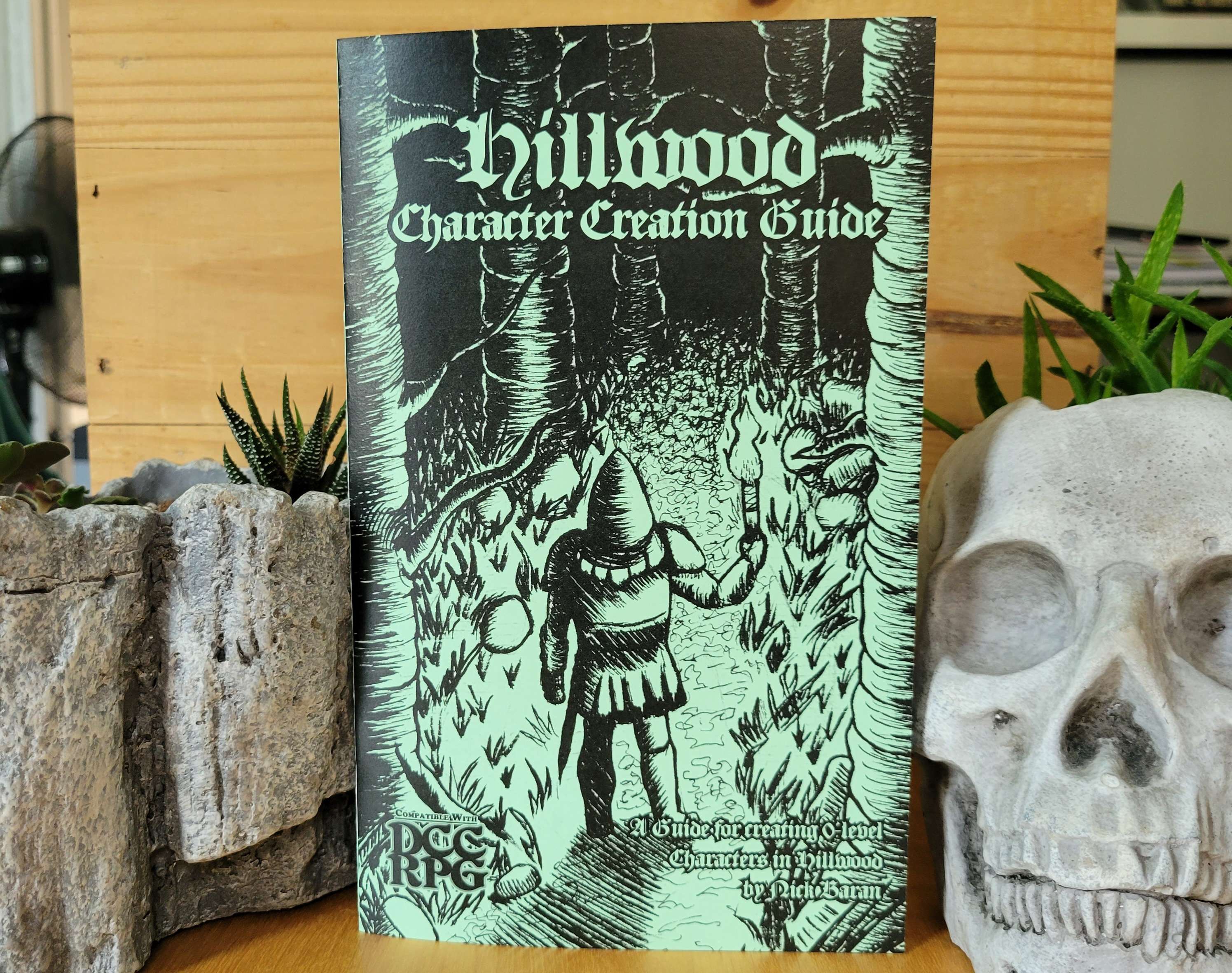 The Hillwood Character Creation Guide is a tool for getting your players up and running as quickly as possible with brand new 0-level characters. Designed for use with DCC RPG, this free document can be printed and handed out to your players, removing the need to pass around a book. This mini zine is perfect for both your home group and convention games.